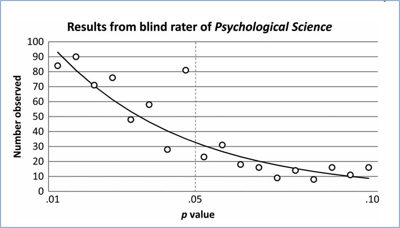 Masicampo, E. J., & Lalande, D. R. (2012). A peculiar prevalance of p values just below .05. Quarterly Journal of Experimental Psychology, 65, 2271-2279.